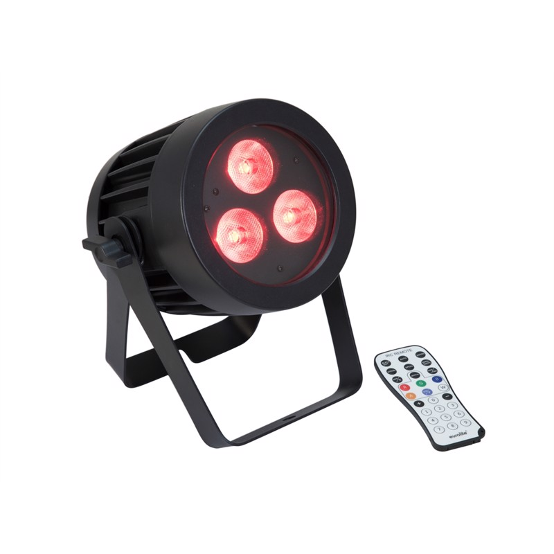 Weatherproof IP65 spotlight with 3 QCL LEDs and RGBW color mixing3 high-power 8 W RGBW LEDs 4in1Suitable for external use IP65Auto, masterslave and DMX modeBuilt-in auto show programsColor temperature adjustable in 6 steps 2700-8000 KDirect color