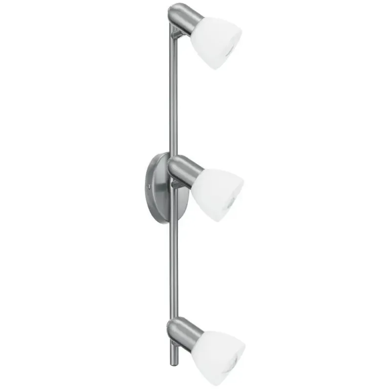 EGLO Palma Spot 3l Bshvid – Spotlampe – 26933EGLO PALMA spotskinne 3L i børstet stål med opalhvide glas. Beregnet til E14 40W, men kan med fordel forsynes med LED lyskilder. Leveres ekskl. lyskilder.