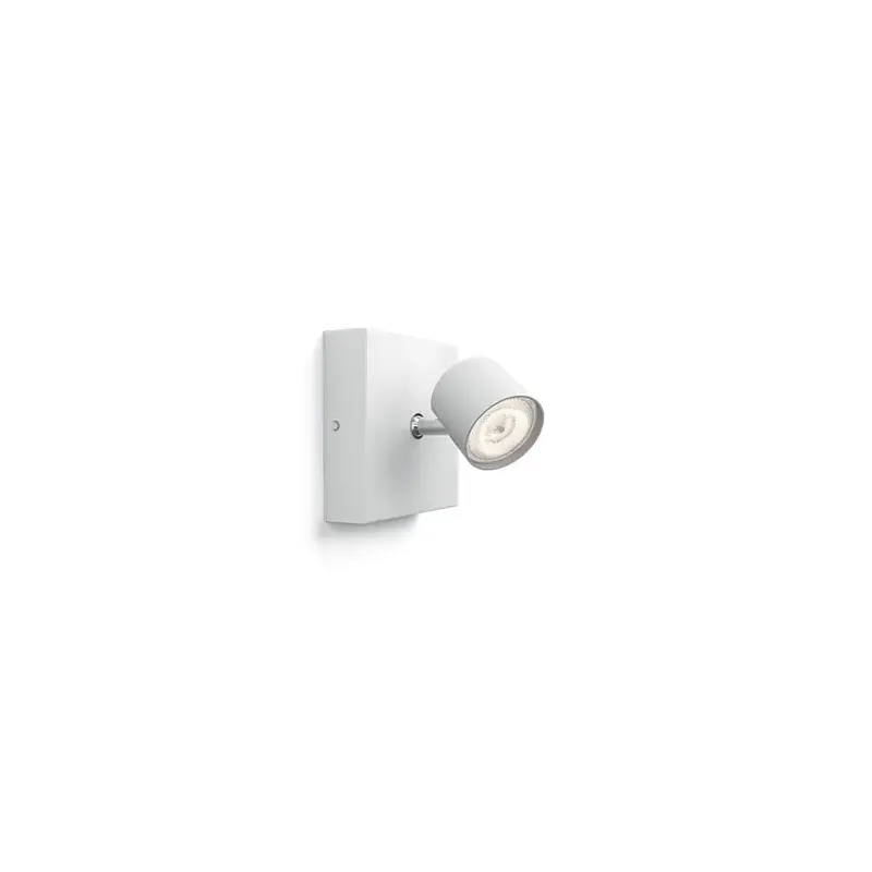 Philips myLiving Star Spot, Hvid 1 x 4,5W Med den hvide Philips Star WarmGlow LED-spot kan du ændre stemningen ved at dæmpe lyset fra lyst til varmt. Jo mere du dæmper, des varmere lys, hvilket skaber et hyggeligt hjem. Design og finish: Materiale: Metal
