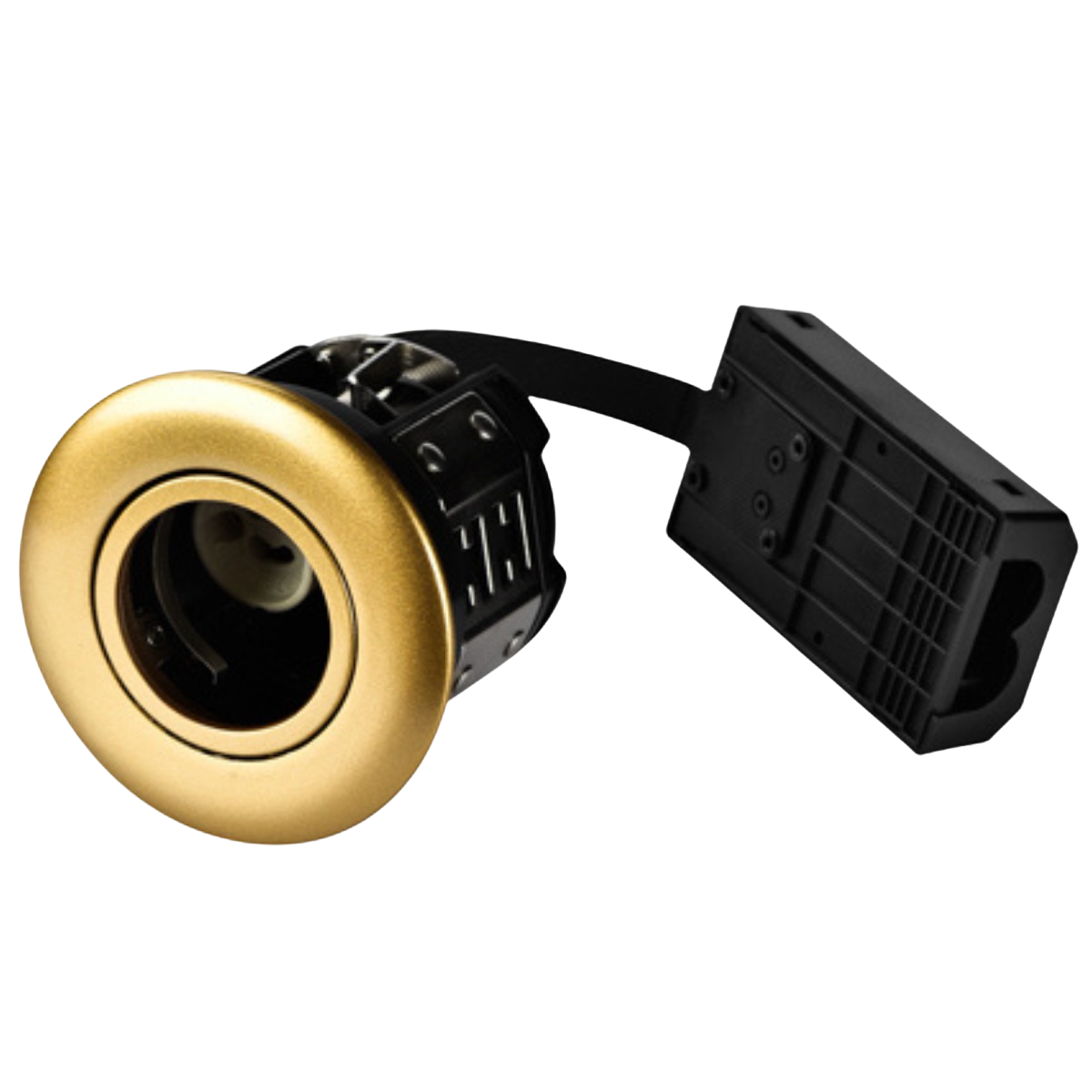 Spot til indbygning passer til GU10 LED lyskilder Effektiv og nem installationDette eleganteindbygningsspot i blank messing,har en rund form og en GU10 sokkel. Det er udstyret med et 3Gsløjfebart kabel og opfylder kravene til lufttæthed i henhold til