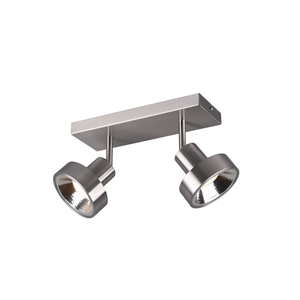 Leon er en smart dobbel spot fra Trio – i denne udgave er lampen mat alu farvet. Lampens skærme kan justeres i den retning man har brug for lyset. Lampen bruger 2 stk Gu10 pærer max35watt – disse medfølger ikke. Mål: L:28cm H:19cm B:16cm