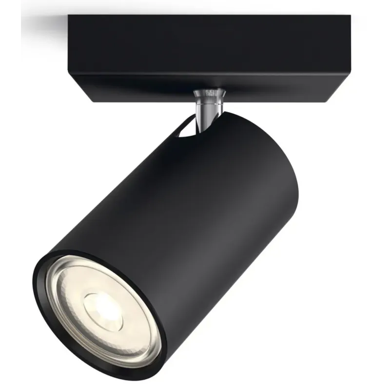 Philips myLiving Kosipo Spot, Sort1x5,5W Philips MyLiving Contemporary er en serie af spotlys med elegante silhuetter og lys af høj kvalitet, der passer til nutidens smag, trends og livsstil. Design og finish: Materiale: Metal Farve: Sort Designet til:
