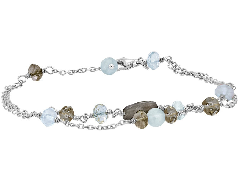 Smuk sølv armbånd med Aquamarin, Røgkvarts og Calcedon fra serien Soft Spot fra Rabinovich – længde 1719 cm.