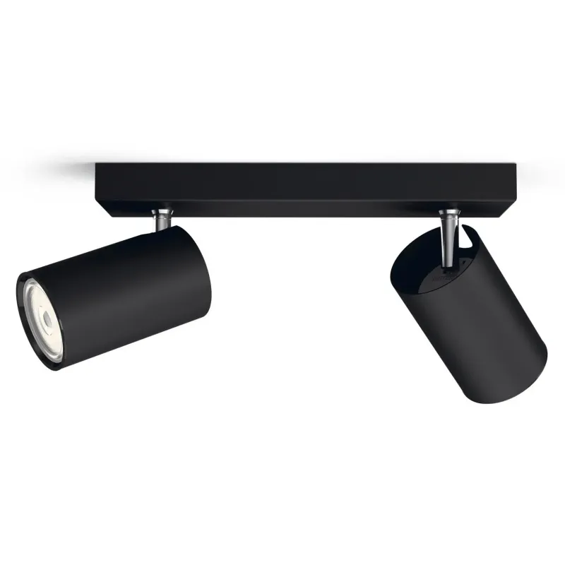 Philips myLiving Kosipo Spot, Sort 2×5,5W Philips MyLiving Contemporary er en serie af spotlys med elegante silhuetter og lys af høj kvalitet, der passer til nutidens smag, trends og livsstil. Design og finish: Materiale: Metal Farve: Sort Designet til:
